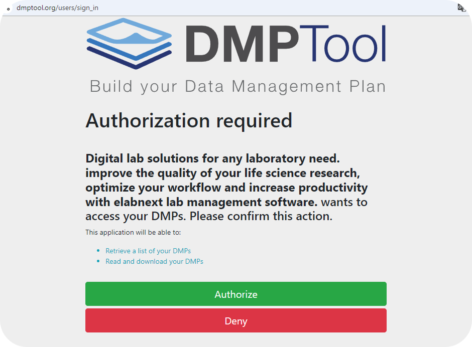 The DMPTool add-on connects DMPTool with SciSure, allowing research teams to access data management plans directly within their daily lab environment.